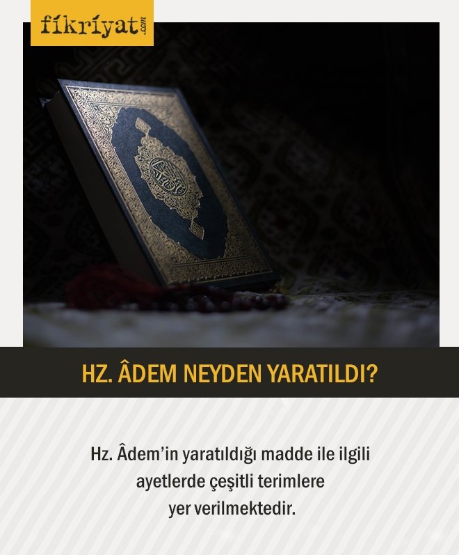 🔹 Müfessir Fahreddin er-Râzî, çeşitli ayetlerde yer alan ifadelerle Hz. Âdem'in yaratılışı ile ilgili maddeleri toprak (türâb), su (mâ'), çamur (tîn), akışkan veya süzme çamur (sülâle min tîn), yapışkan çamur (tîn lâzib), kurumuş çamur (salsâl) şeklinde sıralamıştır.*