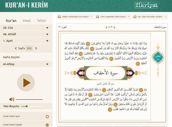 Fikriyat.com olarak her gün bir cüzle Kur'an-ı Kerim'in hatmini siz değerli okurlarımızla birlikte tamamlayacağımız Ramazan mukabelesinin 26. cüzünü sizlerle buluşturuyoruz.