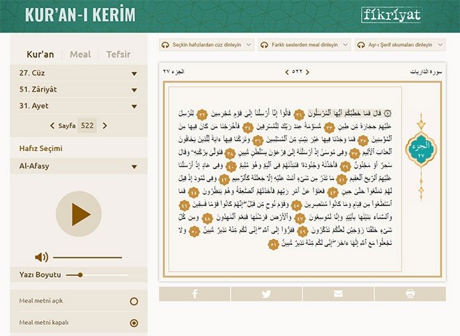 Fikriyat.com olarak her gün bir cüzle Kur'an-ı Kerim'in hatmini siz değerli okurlarımızla birlikte tamamlayacağımız Ramazan mukabelesinin 27. cüzünü sizlerle buluşturuyoruz.