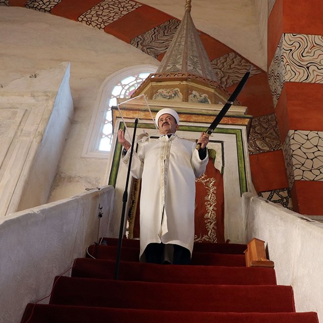 Edirne'deki Eski Cami'de imamlar 6 asırdır cuma ve bayram hutbelerine kılıçla çıkıyor