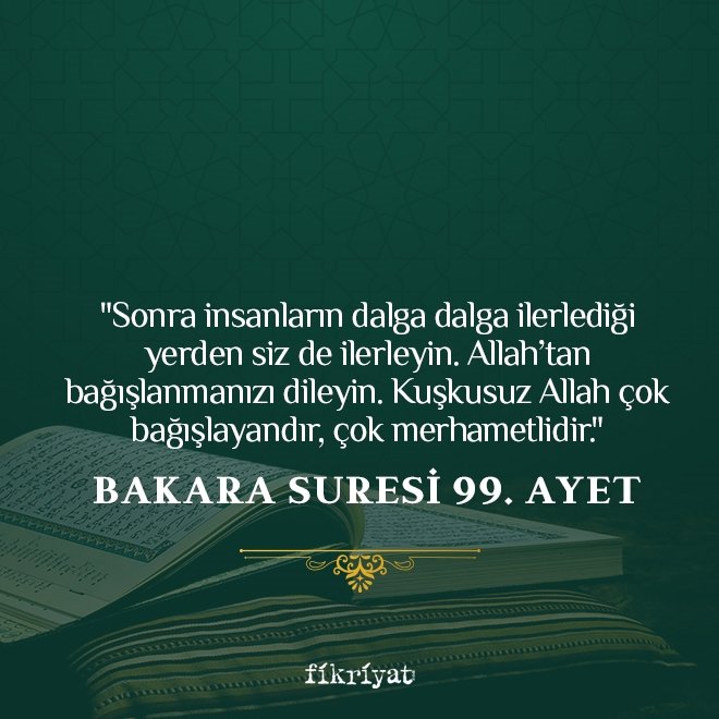 "Sonra insanların dalga dalga ilerlediği yerden siz de ilerleyin. Allah'tan bağışlanmanızı dileyin. Kuşkusuz Allah çok bağışlayandır, çok merhametlidir."