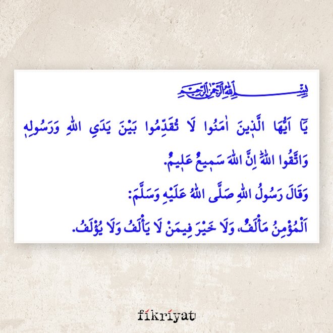 Yüce Rabbimiz Hucurât sûresinin ilk ayetlerinde bizlere şöyle buyurmaktadır: "Ey iman edenler! Allah ve Resûlünün önüne geçmeyin. Allah'a karşı gelmekten sakının. Şüphesiz, Allah hakkıyla işitendir, hakkıyla bilendir. Ey iman edenler! Seslerinizi Peygamberin sesinden daha fazla yükseltmeyin, birbirinize seslendiğiniz gibi ona seslenmeyin; sonra farkında olmadan amelleriniz boşa gider."1