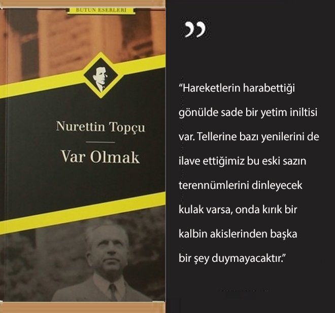 🔶 Nurettin Topçu'nun var olmanın, düşünmek, sevmek ve hareket etmek olduğunu savunduğu; "neden yaşıyoruz" sorusunun cevabını kendine özgü, ilgi çekici bir üslupla kaleme aldığı eseri Var Olmak, işte bu aralanan kapılar içerisinde en dikkatimizi cezbedenler arasında.