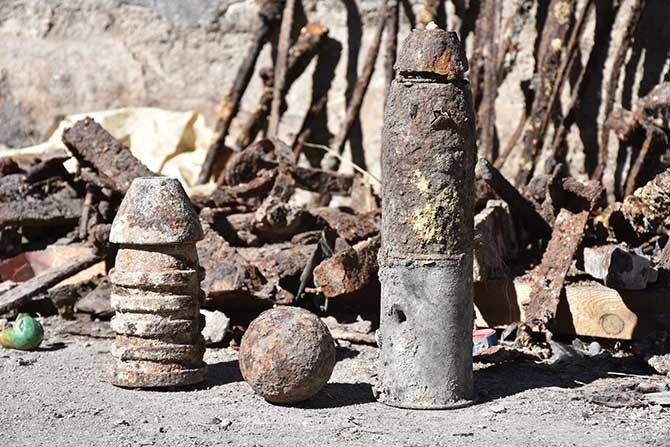 "KAZILARDA OSMANLI-RUS SAVAŞI'NA AİT SÜNGÜ TOP MERMİSİ VE GÜLLE ORTAYA ÇIKTI"