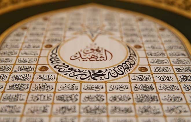 Yıldızın üzerinde ise Muhammed ismi var. Muhammed ismi beş köşelidir. İkisinin ortasında da kırmızı mürekkeple yazılan Hüveş Şehid, Allah'ın 99 isminden iki tanesidir. Esma-i Hüsna'dan özellikle Hüve ve Şehid isimlerini seçtik. Hem kompozisyon oluşturmak hem de bir anlam yüklemek için yazdık. Levhadaki kutucuklar içinde ise 15 Temmuz şehitlerinin isimleri yer alıyor."