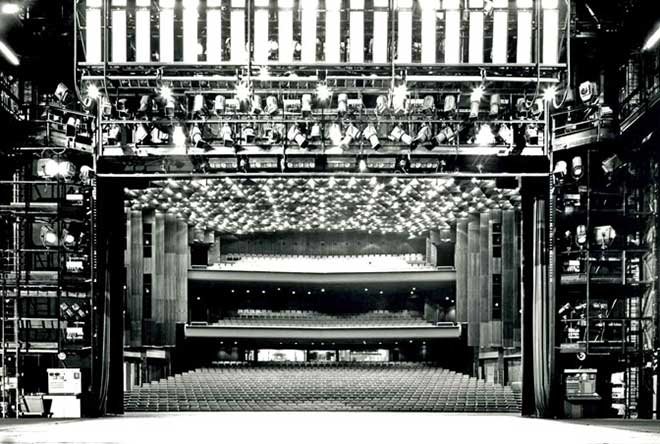 AKM büyük salon sahne arkası Reha Günay, 1977- SALT Araştırma, Hayati Tabanlıoğlu Arşivi