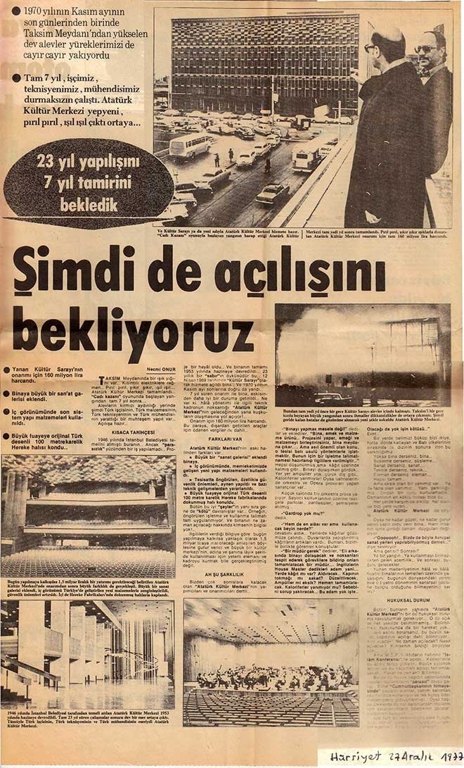 İstanbul Kültür Sarayı, Atatürk Kültür Merkezi ismiyle yeniden açıldı - SALT Araştırma, Hayati Tabanlıoğlu Arşivi
