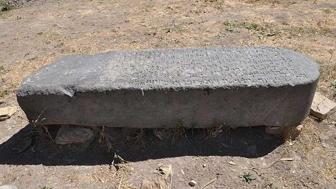 Yrd. Doç. Dr. Gökçe, buldukları stelin ön yüzü yazıtlı 2 metre 20 santim uzunluğundaki bazalt taşından yapıldığını söyledi.