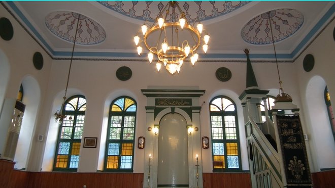 Boğazın gerdanına buse konduran aşı boyalı bir cami