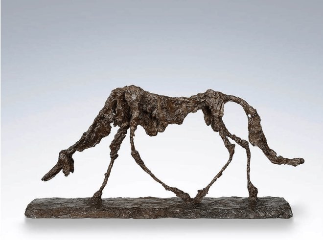Aynı dönemde bronz kedi, köpek ve at gibi çalışmaları da insan vücutlarında olduğu gibi oldukça ince ve dokulu bir gövdeye sahiptirler. Giacometti'yi Fransa dışında ünlü kılan 1950'li yıllarda Newyork Pierre Matisse Galerisi'nde açtığı sergileridir.
