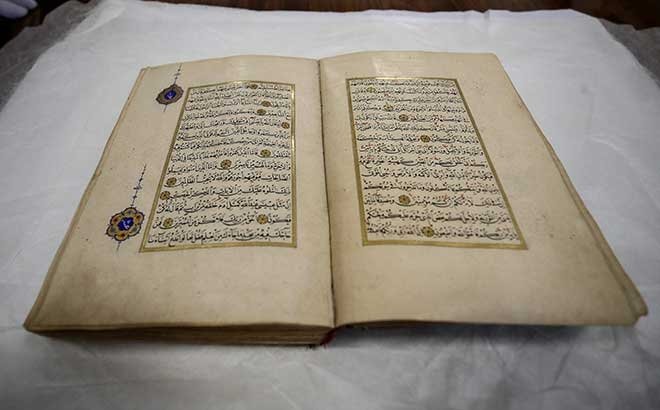Serlevha, sure ve ayet başlarındaki süslemeleriyle dikkati çeken 25x17 cm ölçülerindeki Kur'an-ı Kerim, Topkapı Sarayı Müzesi'nin yazma eserler bölümünde sergilenecek.