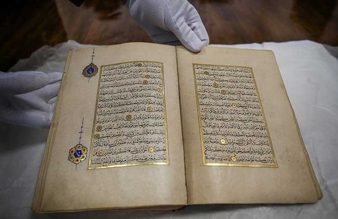 İkinci Bayezid dönemi 1494 tarihli nesih, rika el yazması Kur'an-ı Kerim'in is mürekkebi ile altın ve tezhip boyalı olduğu belirtilmiş, eserin sahibi bölümünde ise, 'Hususi Koleksiyon' ibaresi dikkat çekmişti.