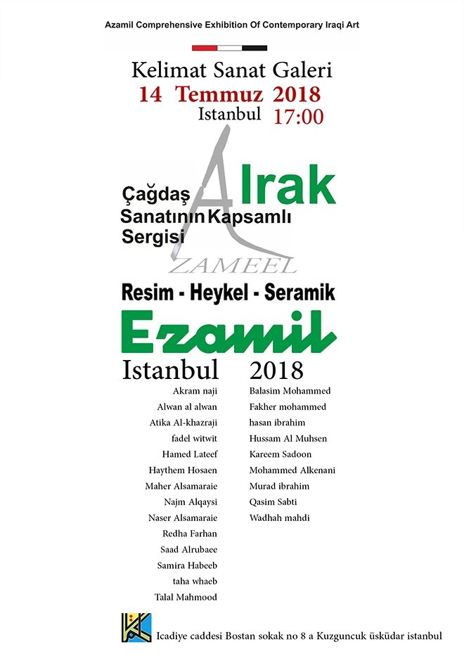 Iraklı sanatçılardan oluşan Ezamil Grubu, Irak ve Arap kültürünü sanata tüm güzelliğiyle yansıttıkları resim, heykel ve seramik sanat dallarındaki seçkin eserlerini, İstanbul’da bir sergi ile sanatseverlerin beğenisine sunacak.