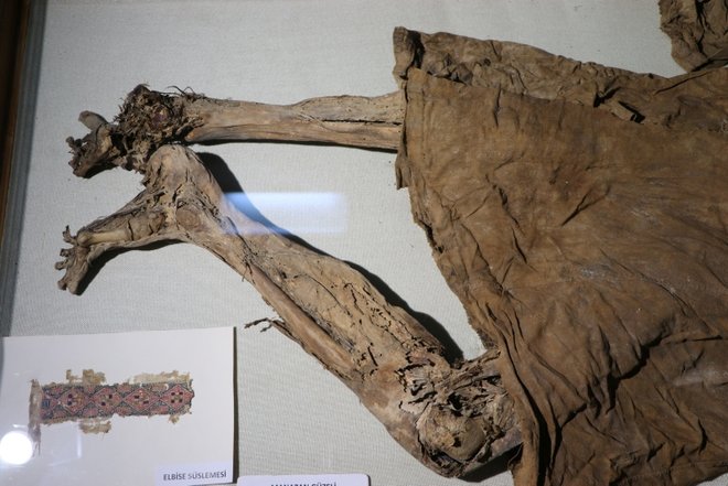Karaman Müzesi'nde sergilenen ve yaklaşık 14 asırdır bütünlüğünü büyük ölçüde koruyan genç kız cesedi, görenlerin dikkatini çekiyor.