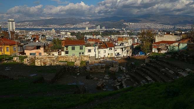 İzmir'in 19. yüzyılda aldığı göçler sırasında tiyatronun üzerine bir mahalle kurulduğunu kaydeden Ersoy, yaklaşık 100 yıl ayakta kalan mahalledeki yaklaşık 50 evin, bölgenin 1. derece arkeolojik Sit alanı ilan edilmesinin ardından 2012 yılında yıkıldığını aktardı.