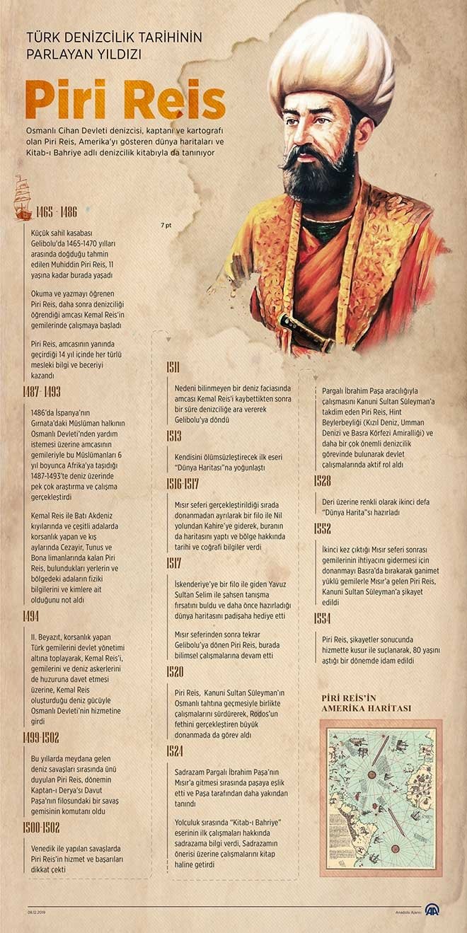Amerika'yı gösteren dünya haritaları ve "Kitab-ı Bahriye" kitabıyla tanınan ünlü denizci, kaptan ve kartograf Piri Reis, doğumunun yıl dönümünde anılıyor.