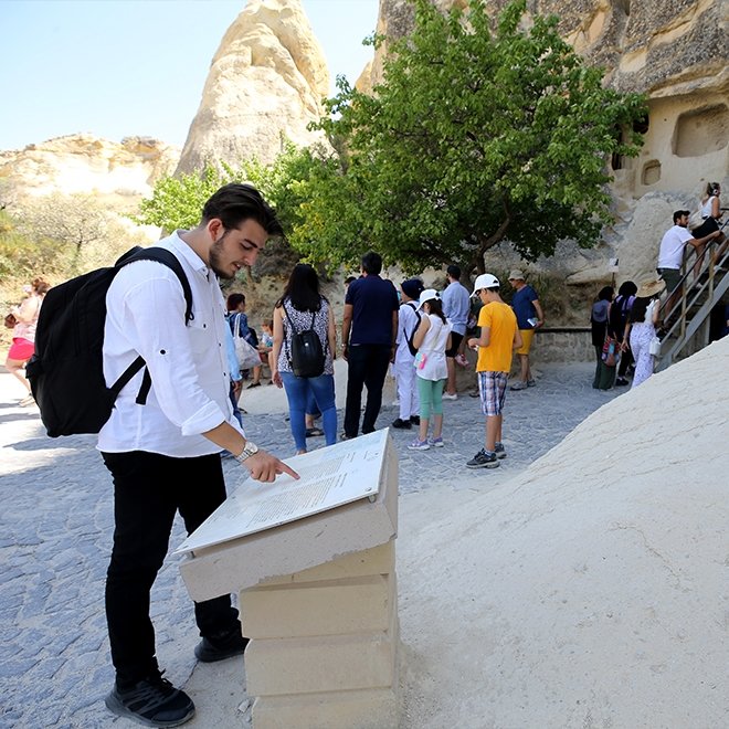 Çetin, "seyahatsever.gsb.gov.tr" internet sitesindeki ön kayıt formunu doldurduktan sonra Müzekart GNS uygulamasını telefonuna indirip seyahate başladığını aktararak, "Göreme Açık Hava Müzesi ücretliyken, Cumhurbaşkanımızın öncülüğündeki bu projeyle ücretsiz girdik. Projeyi sosyal medyada duydum. Öncelikle İstanbul'daki müzeleri gezdim. Oradaki yapıların tarihini inceledim. İstanbul ve Ankara'daki belli başlı müzeleri gezip KYK yurdunda konakladım. Şimdi de Göreme Açık Hava Müzesi'ne geldim. Bu rota üzerinde gerçekten hayatımda deneyimleyemediğim fırsatı bulmuş oldum." diye konuştu.