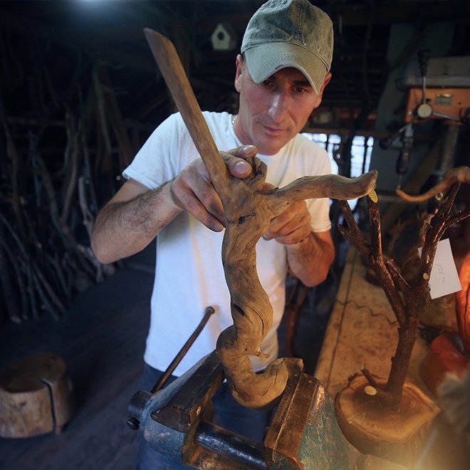 Doğadan topladığı ağaç parçalarını sanata dönüştürüyor