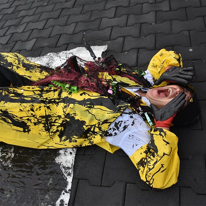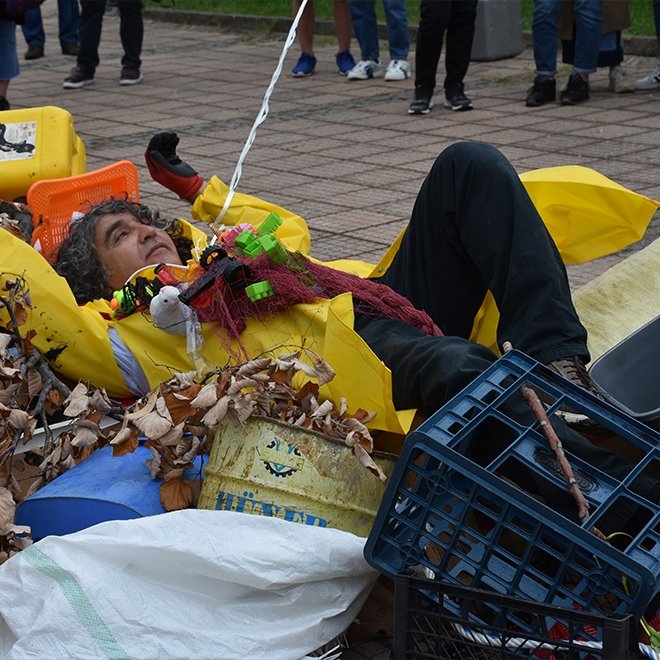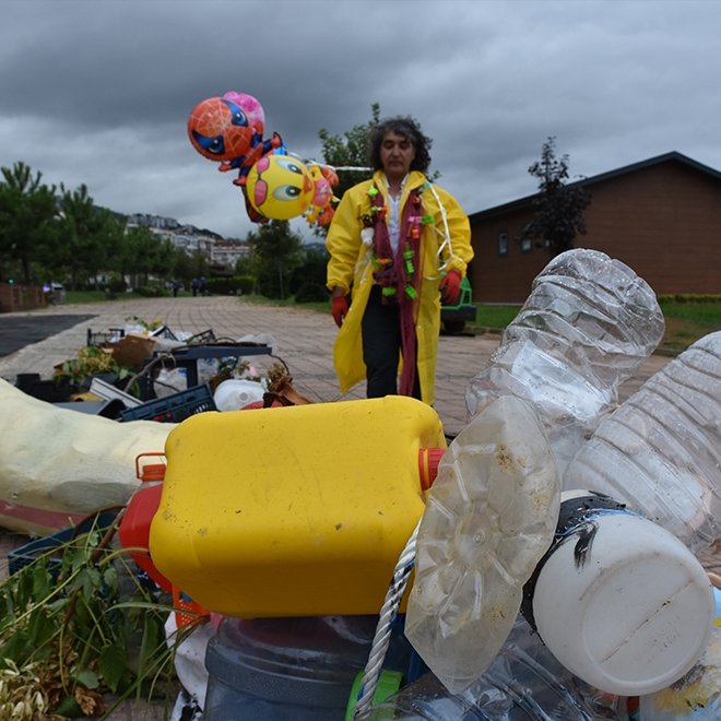 Trabzon'da bir akademisyen "Atık" adlı performansıyla çevre kirliliğine dikkat çekti