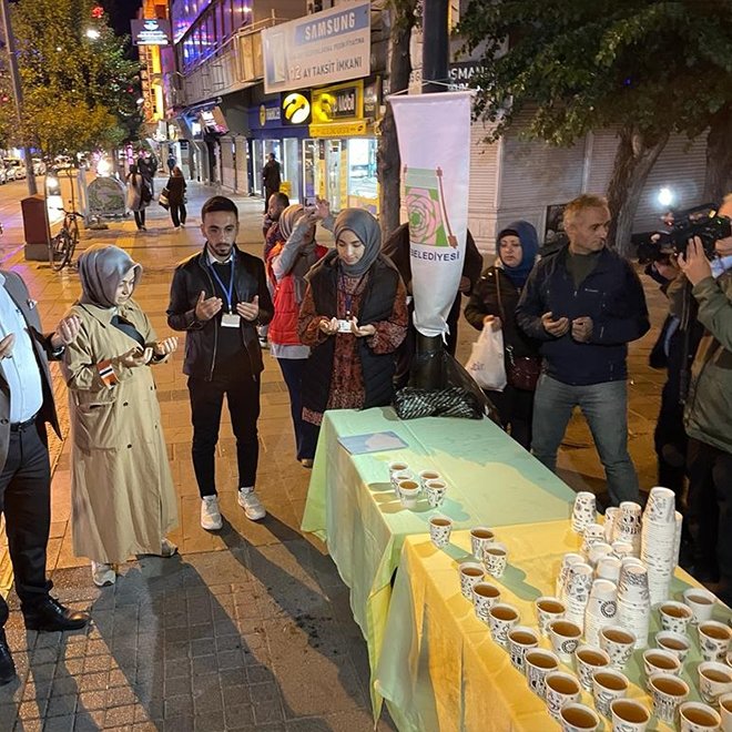 Etkinlikte Türkiye İlahiyatlar Derneği Isparta şubesindeki görevliler, musluktan bardaklara doldurdukları ballı şerbetleri, ibadetini yapan cemaate ve vatandaşlara dağıttı.