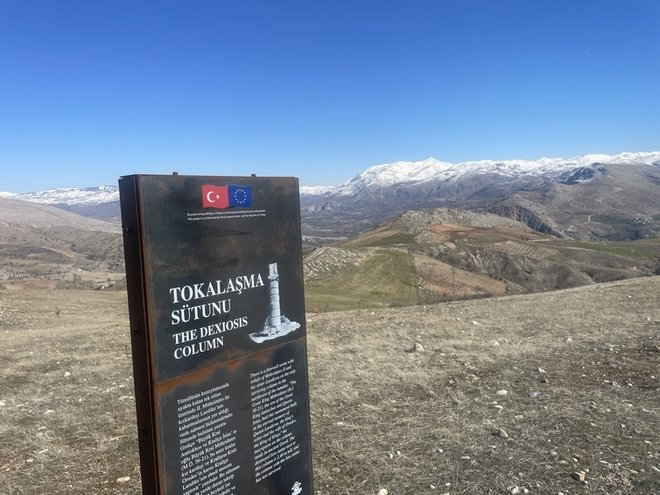 "Asrın felaketi" olarak nitelenen Kahramanmaraş merkezli depremlerin etkisiyle Adıyaman'daki 2 bin yıllık Karakuş Tümülüsü'nde bulunan tokalaşma sütunu yıkıldı.
