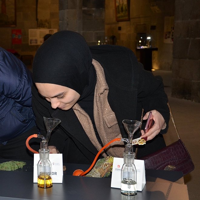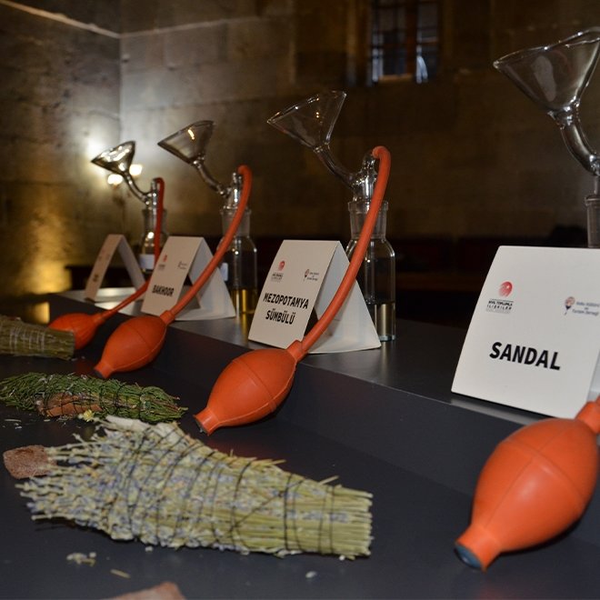 İçişleri Bakanlığı Sivil Toplumla İlişkiler Genel Müdürlüğü ile Koku Kültürü ve Turizmi Derneği iş birliğinde Yakutiye Medresesi'nde açılan sergide, bronz çağdan itibaren kokunun günlük hayatta ve çeşitli ritüellerde kullanımını sağlayan koku kapları, kokunun sunulduğu sanat eseri niteliğinde replikalar yer alıyor.