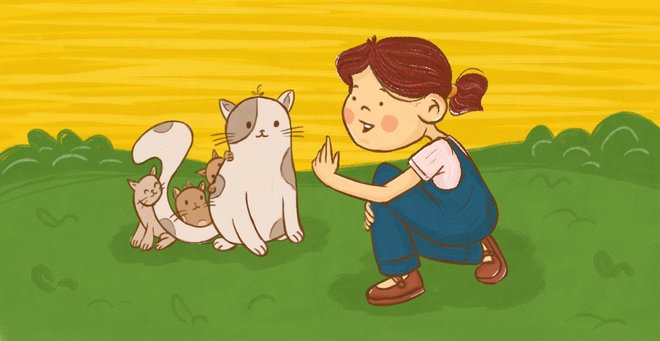 Bahçedeki çuvalların arkasıymış doğumhanesi. Sonra yavruları köşe bucak saklamış. Ne zaman ki azıcık gözleri açılmaya başlamış, o zaman almış daha havadar başka yere taşımış. Bodrum katın penceresiyle bahçe duvarı arasında bir boşluk var, oraya.