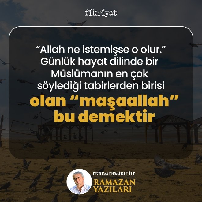 "Allah ne istemişse o olur." Günlük hayat dilinde bir Müslümanın en çok söylediği tabirlerden birisi olan "maşaallah" bu demektir. Bunun mefhûm-ı muhalifi ise gerçekleşmeyen bir hadise söz konusu olduğunda "Allah neyi dilememişse o olmamıştır" şeklinde ifade edilebilir. Cümleyi şartlı söylemek gerektiğinde ise "inşallah" yani "Allah dilerse olur" denilir. Her ikisi birlikte kelime-i tevhide verdiğimiz "iradeli Tanrı" anlayışının istilzam ettiği ahlâk ve dünya görüşünün en veciz ve en nefis anlatımıdır. Bir Müslüman bu tabirler ışığında yaşar, bu tabirlerle şimdiki zamanı ve geleceği ilâhî irade ekseninde yorumlar, karşılaştığı meşakkatleri bu bilinçle göğüsler, en nihayetinde ise "Görelim Mevlâ neyler, neylerse güzel eyler" diyerek bu anlayışı taçlandırır.