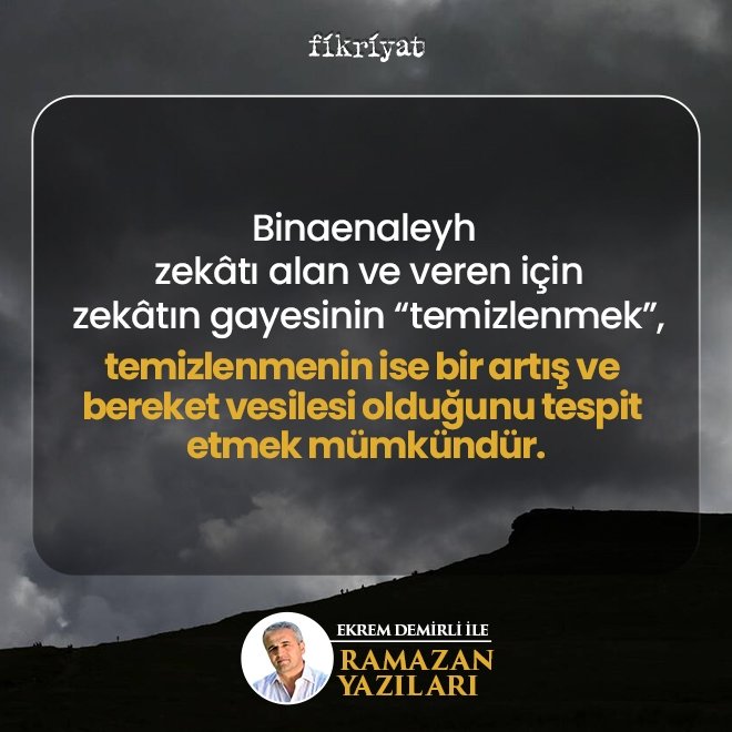 Zenginler için zekât vermenin amacı yoksulların maîşetini temin etmek, kendi imkânlarıyla elde edemedikleri geçim vesilelerini onlara ulaştırmak olmamalıdır herhalde. "Bizden öncekilere yazılmış" haliyle "kurbanlar" ve sadakalar üzerinde düşününce, zekâtın esas amacının yardımlaşma olmadığı söylenebilir. Bu ibadetlerde yardımlaşma akla gelecek olsa bile yardım, başkasına değil; insanın nefsine ve korkularına karşı aklına yardım etmek olmalıdır. Başka bir anlatımla zekât, öncekilere farz kılındığı haliyle bize farz kılınmış olsaydı, ibadeti başka bir tarzda konuşuyor, başka yönden zekâta ve sadakalara yaklaşıyor olacaktık. Kur'ân-ı Kerîm'de yeryüzünde dökülen ilk kan olarak zikredilen Kâbil'in, kardeşi Hâbil'i öldürmesi hadisesi, adanan kurbanların gökten gelen ateşle yakılmasıyla başlar. Kurbanı kabul edilmeyen Kâbil kıskançlık duygusuna kapılmış, Tanrı tarafından kurbanının kabul edilmemiş olmasının yol açtığı yıkıcılıkla kardeşini katletmişti. Binaenaleyh en azından bir dönemde sadakalar (kurbanlar geniş başlığı altında) başka bir amaçla yerine getiriliyor, kişinin Tanrı'ya bağlılığını gösteren bir ibadet -bu da selbî bir eylem olmalıdır- olarak kabul ediliyordu. Zekâtın bu anlamının değişmesi için ortada bir neden görünmüyor. Üstelik zekât alarak ibadetin ifâsına iştirak eden insan için de gayenin bundan farklı olmaması gerekir. O da bir geçinme yolu olarak değil, daha büyük bir arınmanın ve temizlenmenin vesilesi olarak böyle bir sınavdan geçiyor olmalıdır. O halde bir ibadet olarak zekât, âyet-i kerîmede belirtildiği üzere, "temizlik" amacıyla yerine getirilir, her iki taraftaki yerleşik "kirler" zekâtı alarak-vererek temizlenir. Kur'ân-ı Kerîm'de "onların mallarından sadaka al, kendilerini temizle" (Tevbe, 103) denilirken bir hadis-i şerifte ise temizlenmek ile bereket arasında irtibat kurulur.