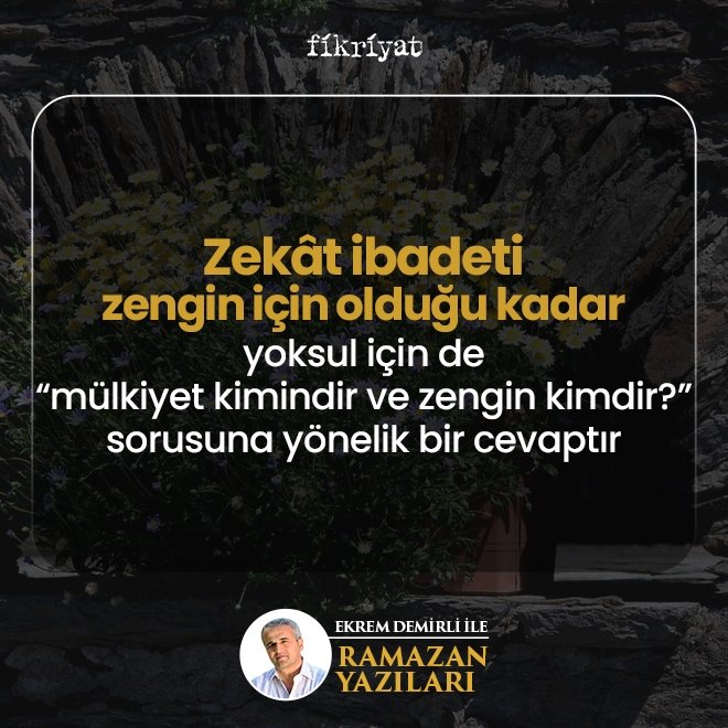 O zaman buradan hareketle yoksulun mülkiyetle ilişkisini "yokluk" halinin ortaya çıkardığı sorunlar ve kirlenmeler cihetinden düşünmek gerekir. Zekât ibadeti zengin için olduğu kadar yoksul için de "mülkiyet kimindir ve zengin kimdir?" sorusuna yönelik bir cevaptır. İnsanı kirleten mülkiyetin sahibi hakkındaki yanlış düşünceler, bu düşüncelerin oluşturduğu hırs ve kibir; mülkiyetten yoksun olma durumunda ise haset, eziklik, kırılma, açgözlülük ve korkulardır. Her iki insanı da bu kirlenme sürecinden arındıracak olan şey, mülkiyetin sahibinin Tanrı olarak kabul edilmesidir. Mülkün sahibi Tanrı olduğuna göre zekât verirken zengin, alırken de yoksul bunu tasdik edecek, kibrin bütün türevleri temizlenmeye başlayacaktır.