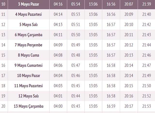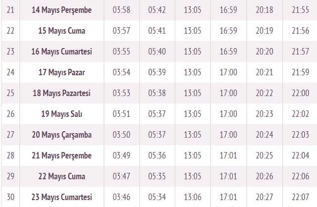 Diyanet İşleri Başkanlığı'nın resmi internet sitesinden imsakiye takvimi yayınlandı. On bir ayın sultanı Ramazan'ın gelmesiyle oruç ibadetini yerine getirecek olan vatandaşlar ilk sahur saati ve iftar saatleri için araştırmalara başladı.23 Nisan Perşembe gecesini 24 Nisan'a bağlayan gece milyonlarca kişi oruç ibadetini yapmak için bu yılın ilk sahuruna kalkacak. Birlik beraberlik, dualar ve ibadetler ile geçirilecek on bir ayının ilk teravih namazı ise bu akşam kılınacak. Sahuru bekleyen vatandaşlar bu sabah saatlerinden itibaren ilk sahur saati ve iftar saatleri ile ilgili araştırmalara başladı.