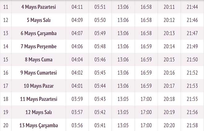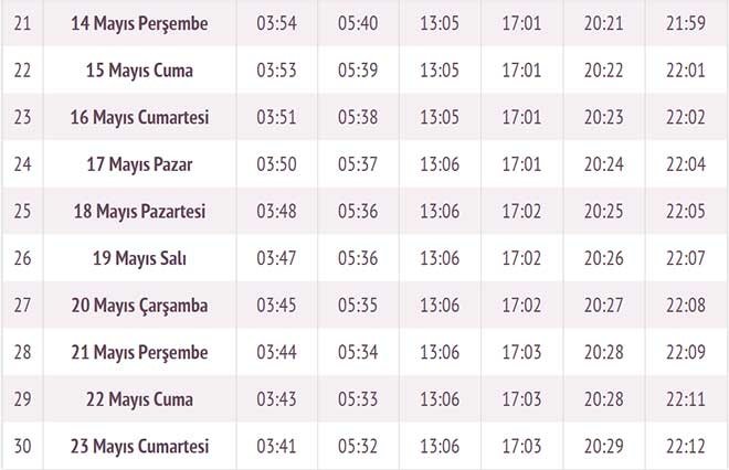 Oruç ibadetini yerine getiren kişilerin iftar yapacakları saat ise 20:00 olacak. Ezanın okunmasıyla birlikte niyetli olan kişiler oruçlarını açabilecekler.