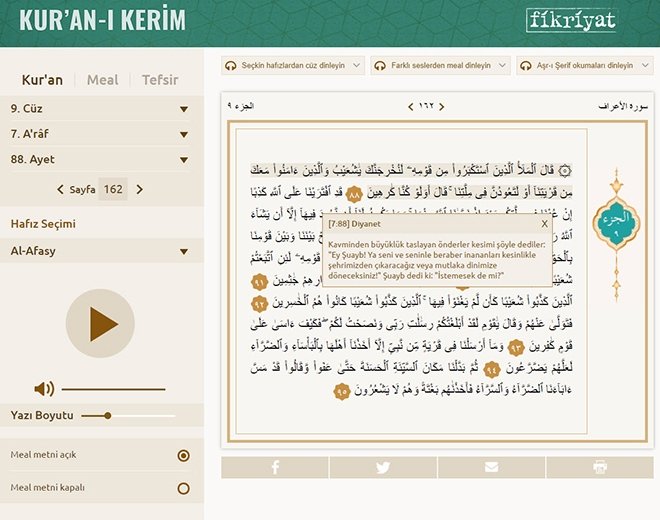9. Cüz - A'râf suresinin 88-206. ayetleri