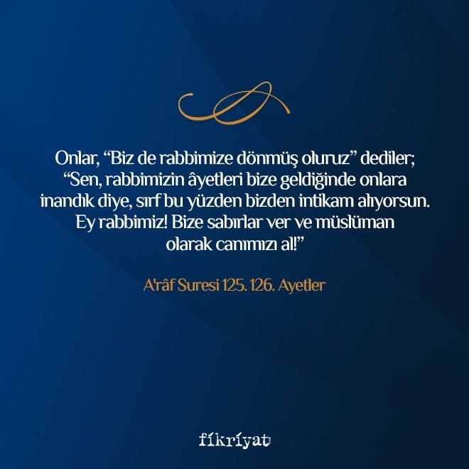 Onlar, "Biz de rabbimize dönmüş oluruz" dediler;﴾126﴿ "Sen, rabbimizin âyetleri bize geldiğinde onlara inandık diye, sırf bu yüzden bizden intikam alıyorsun. Ey rabbimiz! Bize sabırlar ver ve müslüman olarak canımızı al!"