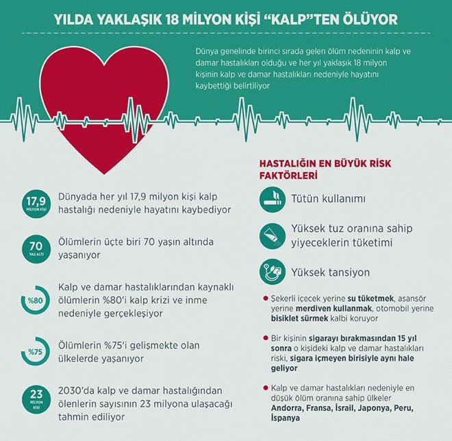 İstatistiklere göre kalple bağlantılı ölümlerin üçte biri 70 yaşın altında gösterilirken, bu hastalıktan her yıl ölenlerin sayısının hızla arttığı belirtiliyor.