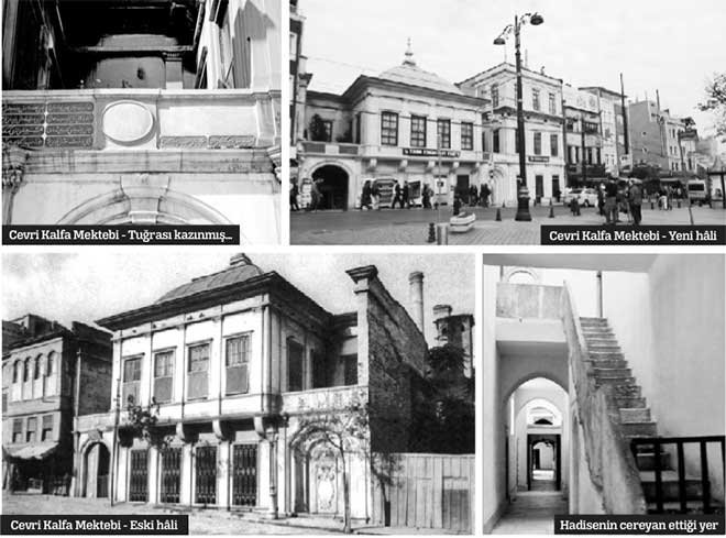 Sadece padişahın değil, bütün İstanbul'un sevgi ve hürmetini kazanan Cevri Kalfa'nın, 1819'da Divanyolu'nda yaptırdığı sıbyan mektebi, İstanbul'daki mekteplerin en büyüğüdür. Mimarî stili orijinaldir. 1858'de kız sanat mektebi olan bina; cumhuriyetten sonra da matbaa ve adliye olarak kullanıldı. Bugün alt katı dükkân, üst katı Türk Edebiyatı Vakfı'dır. Yanında sebil ve çeşmesi vardır. Kitâbesindeki "Mektebiyle ruhu Cevri Usta'nın şâdân ola" mısraıyla tarih düşürülmüştür. Cevri Kalfa, Üsküdar Nuhkuyusu'nda Bağlarbaşı'na giderken sağda zarif bir câmi yaptırdı. Sultan Hamid bunu tamir ettirmiştir...
