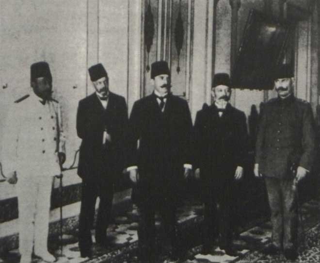 Sultan Abdülhamid'e hâl' edildiğini bildirmeye giden heyetin üyeleri.