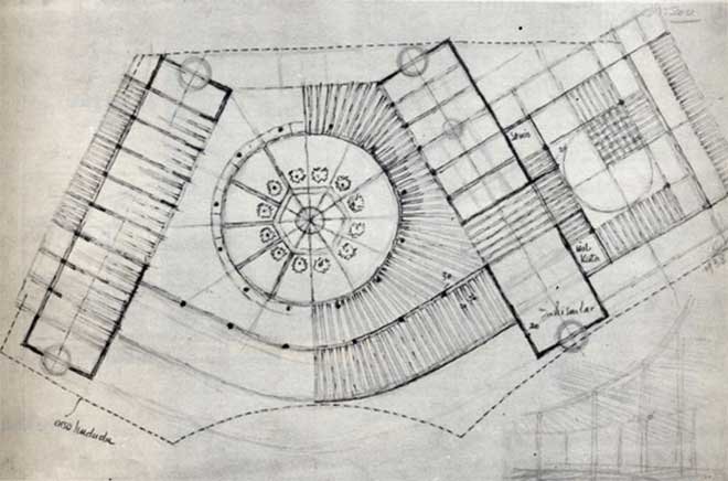 Türk mimarlığına hem tarihsel hem de biçimsel anlamda damgasını vurmuş olan Sedad Hakkı Eldem, yapıyı dairesel düşük bir zemin üzerine inşa etmiş, üst katını bir kahve olarak düzenlemişti. Ahşap ve çelik çerçeveli alçı levhalar kullanılarak, hafiflik amaçlanmıştı.