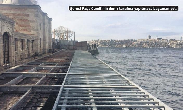 Kadir Topbaş'ın belediye başkanlığı döneminde 2017'de kazık çakılarak caminin deniz tarafına yol yapılmaya başlanmış, binada çatlaklar oluşunca vazgeçilmişti. İstanbul Büyükşehir Belediyesi, Şemsi Paşa Camii'ni denizden koparmak için yol projesini şimdi tekrar başlattı. Ekrem İmamoğlu, Kadir Topbaş'ın yanlış bir icraatını devam ettiriyor ve yol tamamlandığında Şemsi Paşa Camii'nin yalı cami özelliği ile orijinalliği ortadan kalkacak! Kazıklı yol kadar olmasa da yapılan yol ve yoğun yaya trafiği camiye zarar verecek. İşin en ilginci ise "Portatif yol yapıyoruz, yalı cami özelliği bozulmayacak" diye yapılan yanlış işin savunulması. Caminin deniz tarafına yol yapılınca yalı özelliği nasıl kalır? İnsanların zekâsı ile dalga geçiliyor. Ayrıca caminin öbür tarafında yayaların geçtiği bir yol zaten var.