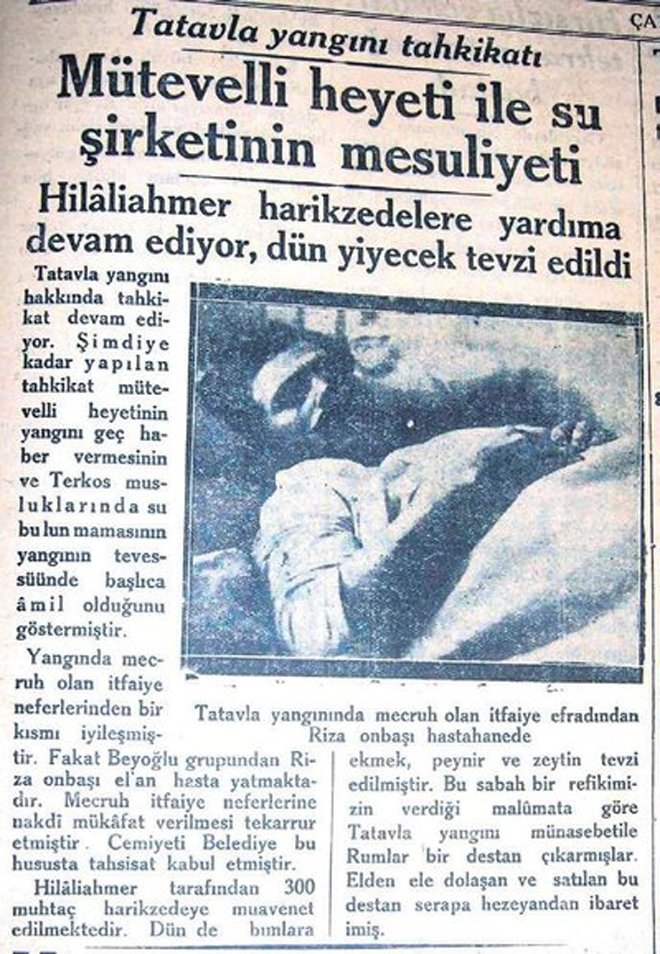 İstanbul'da 1929'da Tatavla'da, yani bugünkü Kurtuluş semtinde meydana gelen büyük yangında bir mahalle neredeyse tamamen yok olmuştu. Vahdettin Engin bir yazısında yangını şöyle anlatır: 21 Ocak 1929'da gece saat 10 sularında Tatavla'da Ayanataş Sokağı'nda Bakkal Yani'nin evinde bir yangın çıktı. İtfaiye yetişinceye kadar fırtına yüzünden alevler iki sokağı sardı. Beyoğlu İtfaiyesi, Tatavla yangını sırasında, Galata'da Arkadi Sokağı'nda başka bir yangını söndürmekle meşguldü. Bu yüzden yangına ilk müdahaleyi İstanbul İtfaiyesi yaptı. Beyoğlu İtfaiyesi de Galata'da bir müfreze bırakıp, bir süre sonra yangın bölgesine yetişti.
