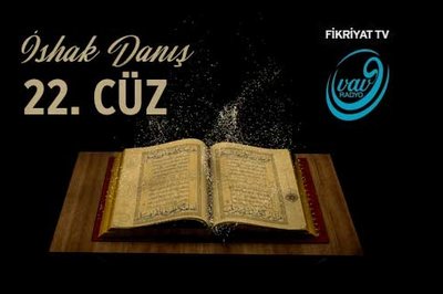Vav Radyo'da yayınlanan, İshak Danış'ın sesinden Kur'an-ı Kerim'in 22’nci cüzündeki (4 adet sure vardır) Ahzâb Suresi (31. ayetten başlar, 73. ayetle sure biter); Sebe’ Suresi (54 ayettir); Fâtır Suresinin (45 ayettir) ve Yasin Suresini (83 ayettir, 1. ayetten başlar, 28. ayete kadar devam eder) sizlerle buluşturuyoruz.