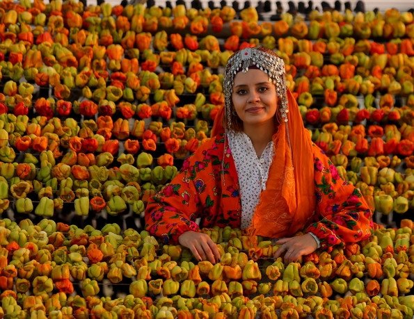 ◽Gaziantep'te mevsimlik işçiler tarafından tarladan toplanan biber ve patlıcanlar kadınlar tarafından saplarından ayrılıyor. Ayıklanan ürünler kamyonlarla kentin muhtelif yerlerindeki tepelik alanlara getiriliyor. Burada işçiler tarafından özenle tek tek iğne yardımıyla ipe geçirilen ürünler, özel olarak tahtadan yapılan sergi alanlarına asılıyor.