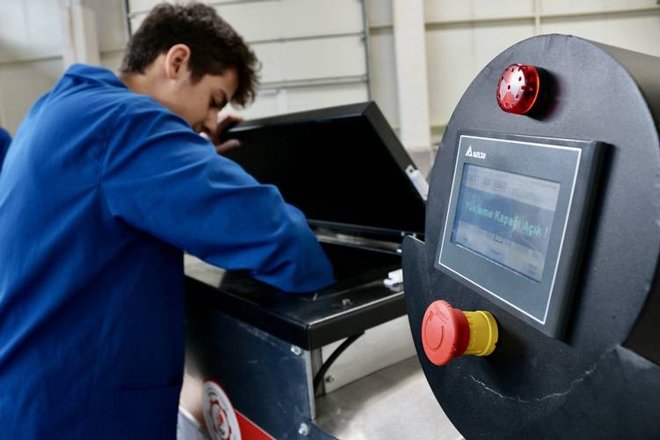 Makine Teknolojileri Alan Öğretmeni Alper Kılıç da yemek artıklarının 4 farklı makineyle en iyi şekilde işlenerek mama haline getirildiğini söyledi.