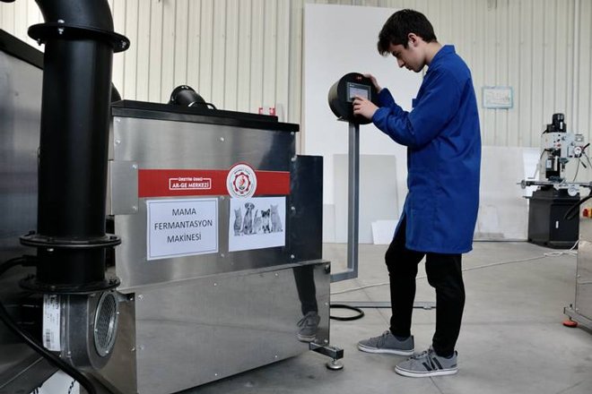 Meslek liseliler yemek artıklarını kedi ve köpek mamasına dönüştüren makine üretti