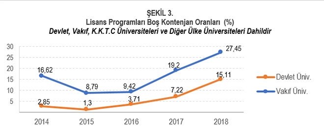 Boş kontenjanlar ve aynı zamanda yüksek öğretimin kalite sorununa doğrudan işaret etmektedir. Öğrencilerin tekrar tekrar üniversite imtihanına girmeleri bu olguyu desteklemektedir. Aileler ve öğrenciler bir üniversiteyi değil kaliteli kabul ettikleri bir üniversite ve bölümü talep etmektedir. Türkiye'nin en prestijli kabul edilen Fen, Sosyal Bilimler, Anadolu ve Proje İHL lisesi mezunlarının ilk sınava girdiklerinde yerleşmeyip tekrar sınava girmeleri bunu teyit etmektedir.