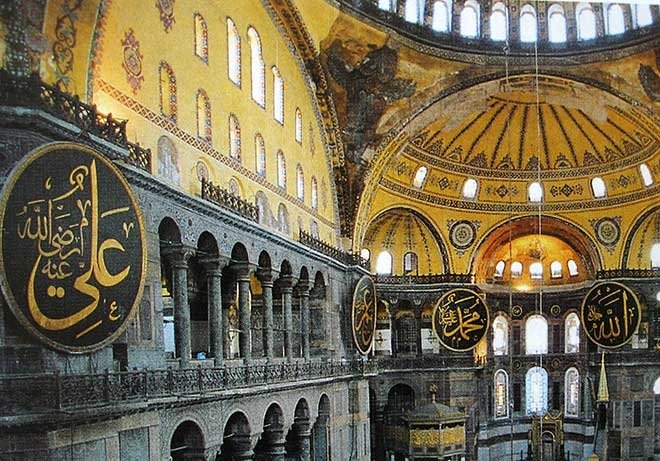 Resim 5: Mustafa İzzet Efendi'nin Ayasofya Camii'ndeki celî sülüs levhaları.