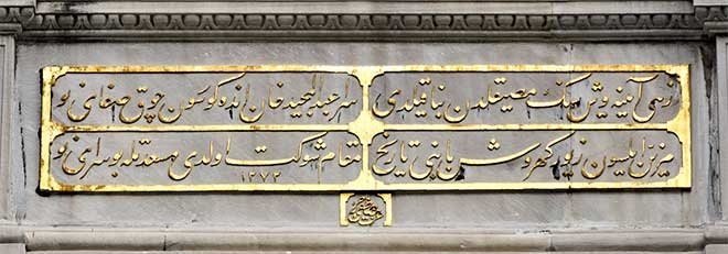 Resim 6: Mustafa İzzet Efendi'nin Dolmabahçe Sarayı'ndaki celî ta'lîk kitâbesi.