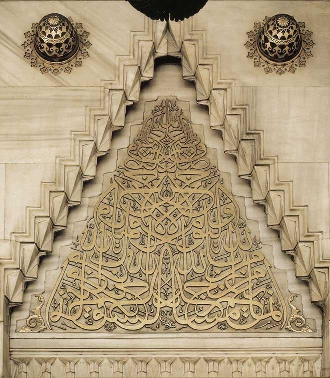 Resim 2: Hâmid Aytaç'ın Şişli Câmii kapısı üzerindeki müsennâ celî sülüs istifi.