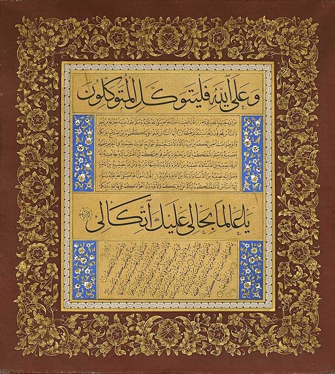 Resim 1: Kâmil Akdik'in çift kıt'alı sülüs-nesih bir levhası.