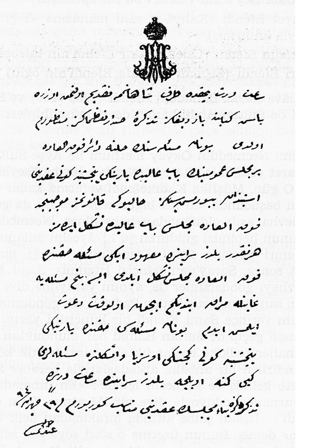 Resim 2: Sultan II.Abdülhamîd'in rık'a hattıyla Sadrâzam İbrahim Edhem Paşa'ya yazdığı 12 Haziran 1294 tarihli mektubu.